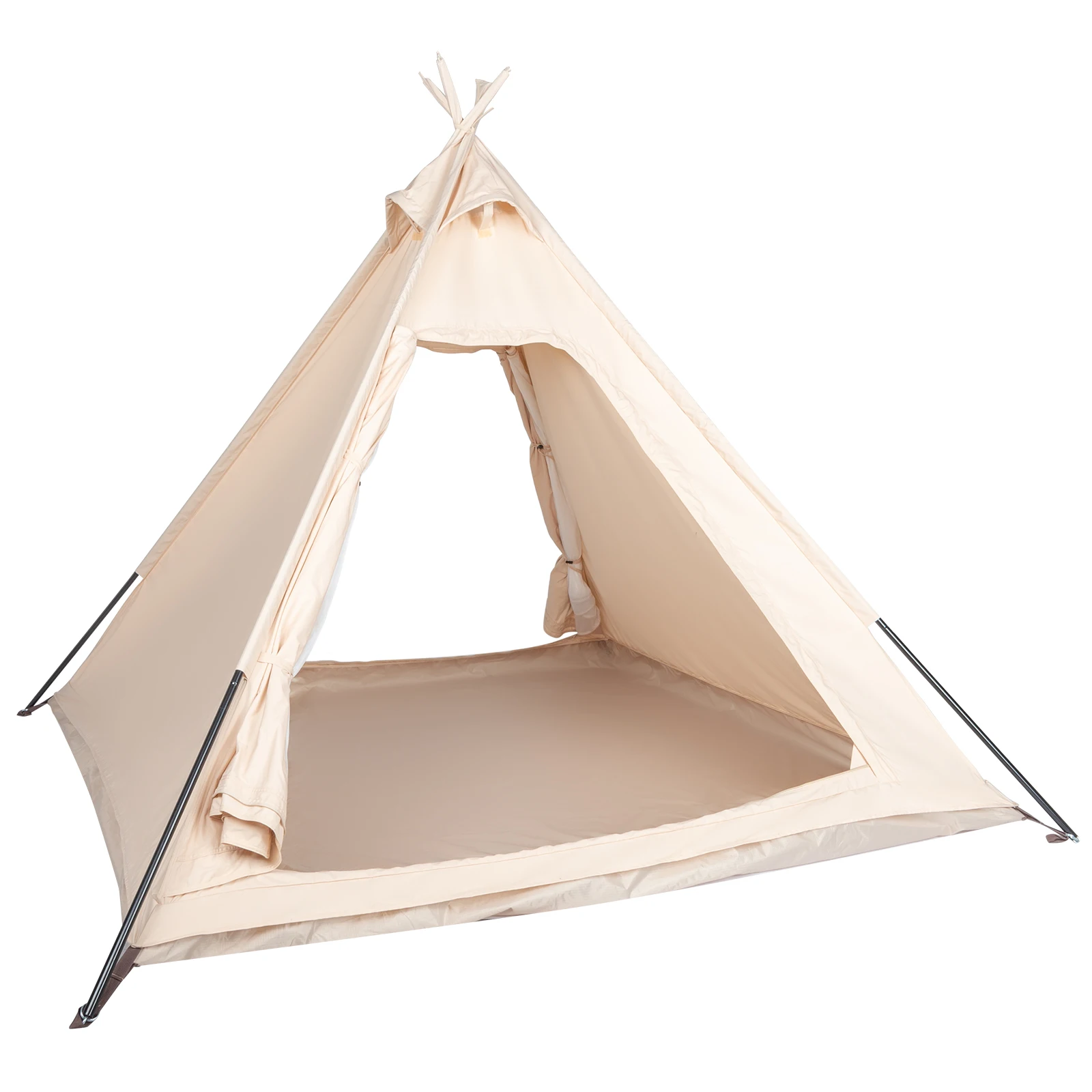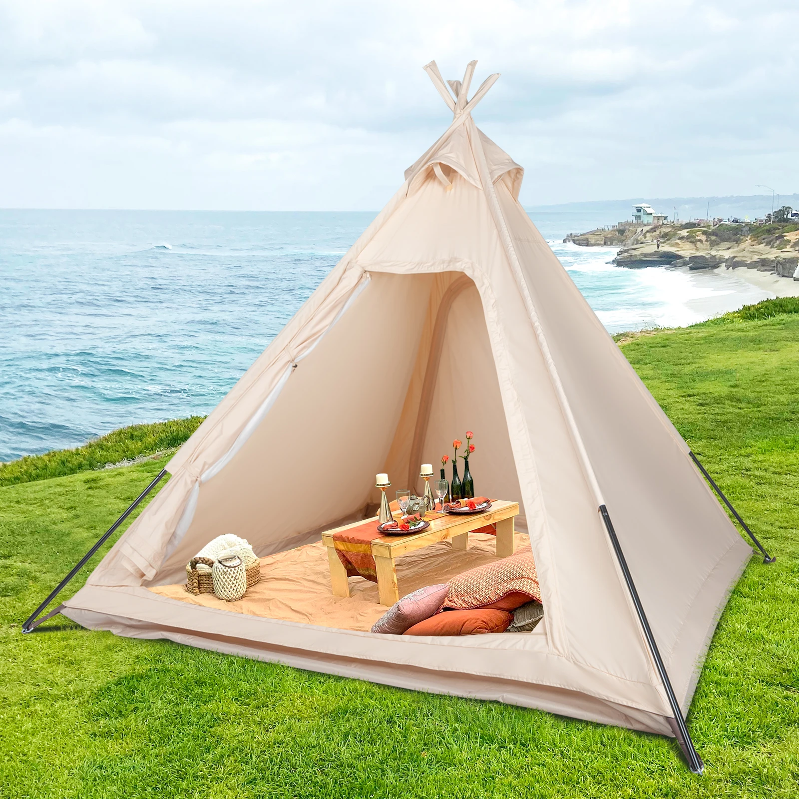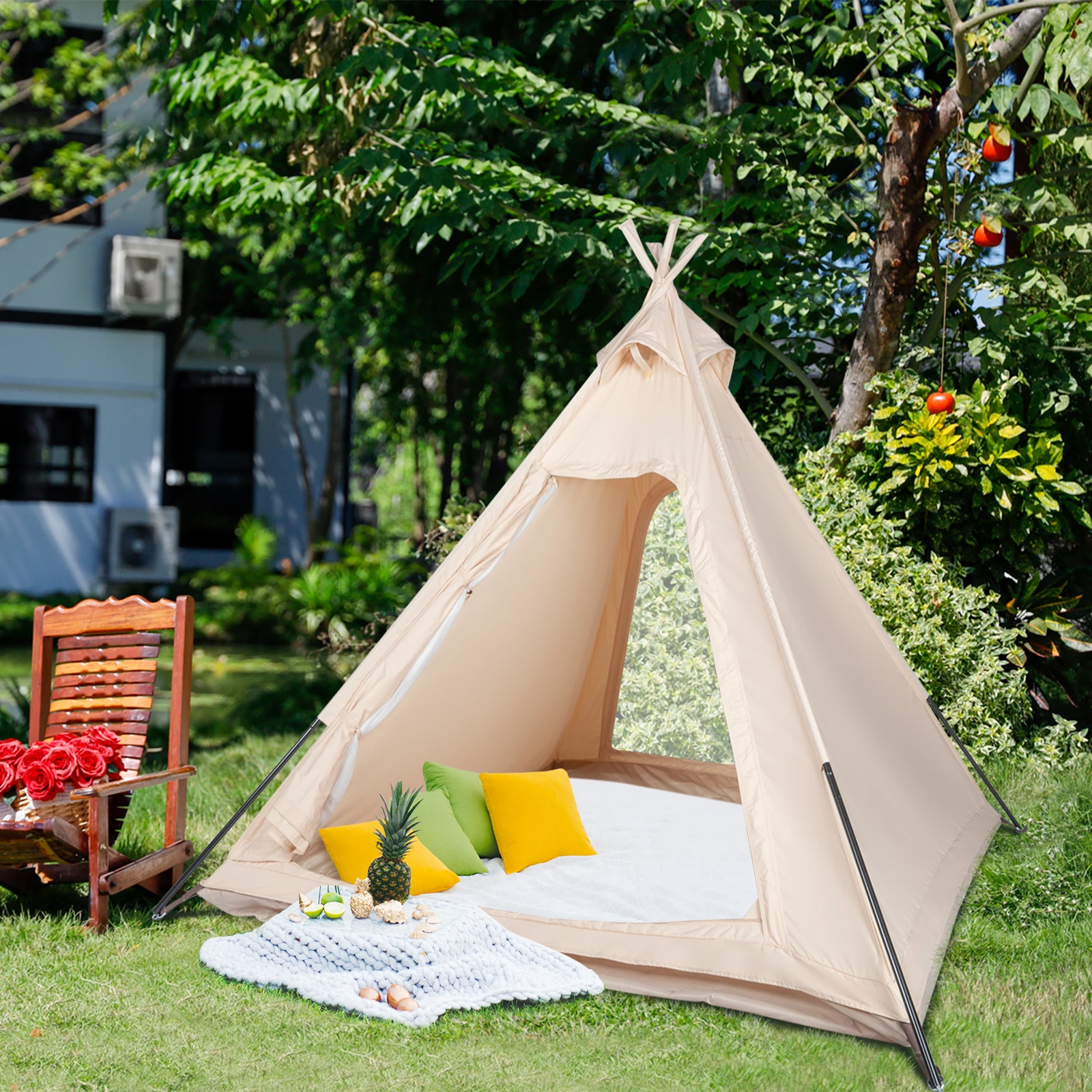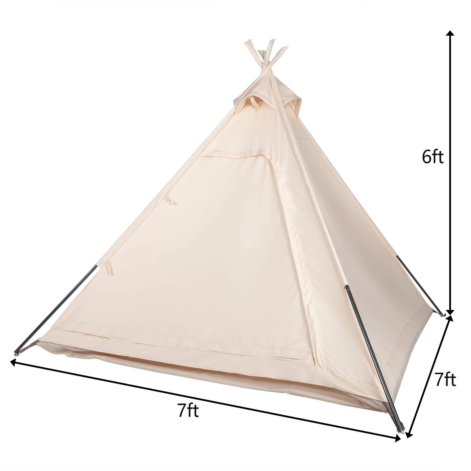 7ft Camping Tent 3-4 Person 3 Seasons Cotton Tent Triangle Breathable Tent for Patio, Garden