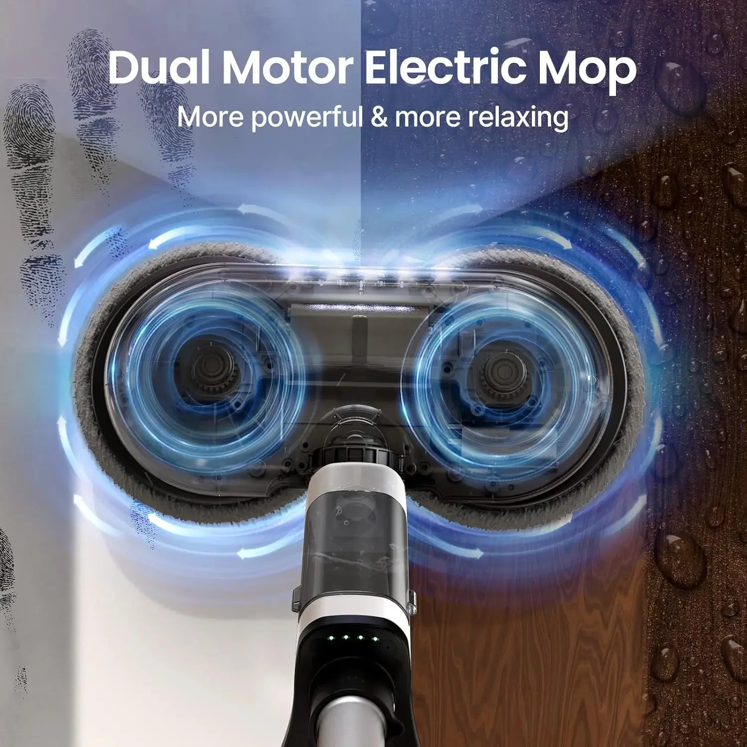 With 2600mAh Long-lasting battery, the cordless mop can quickly clean up to 2350 ft² area.