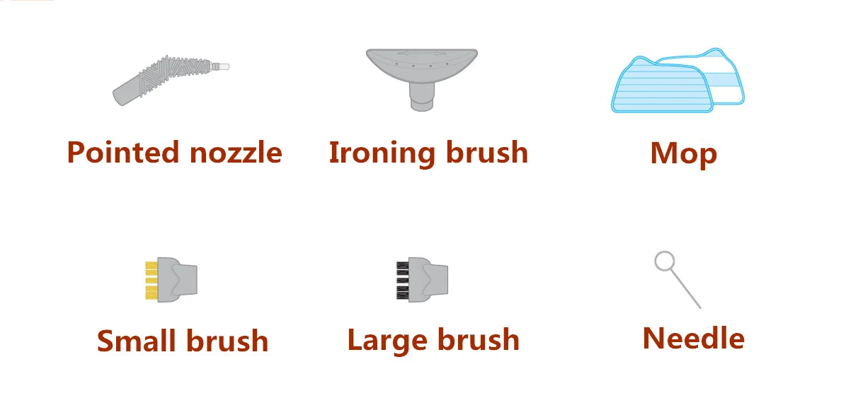 1.Pointed Nozzle:Used for cleaning stove, toilet, high temperature cleaning, etc.