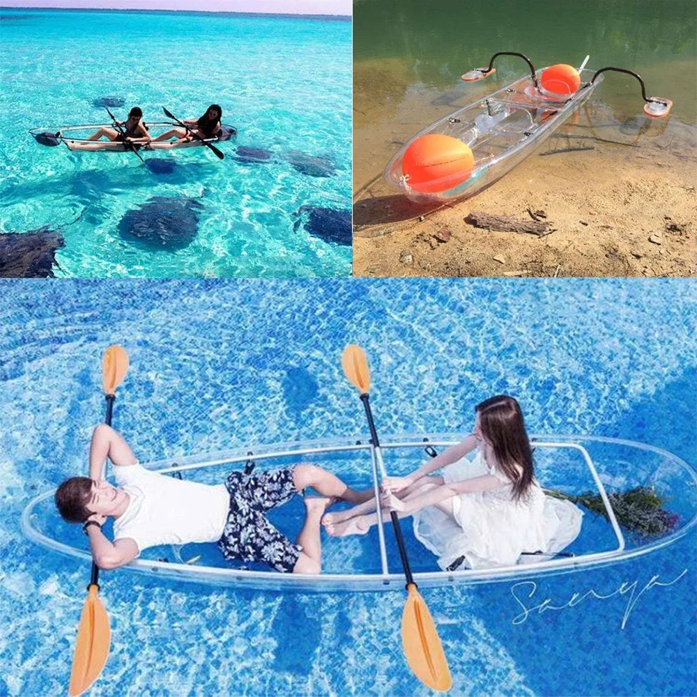 Firstents Fishing 11ft Clear Inflatable Kayak 2 Person Transparent Kayaks Transparent Sightseeing Boat with Paddles